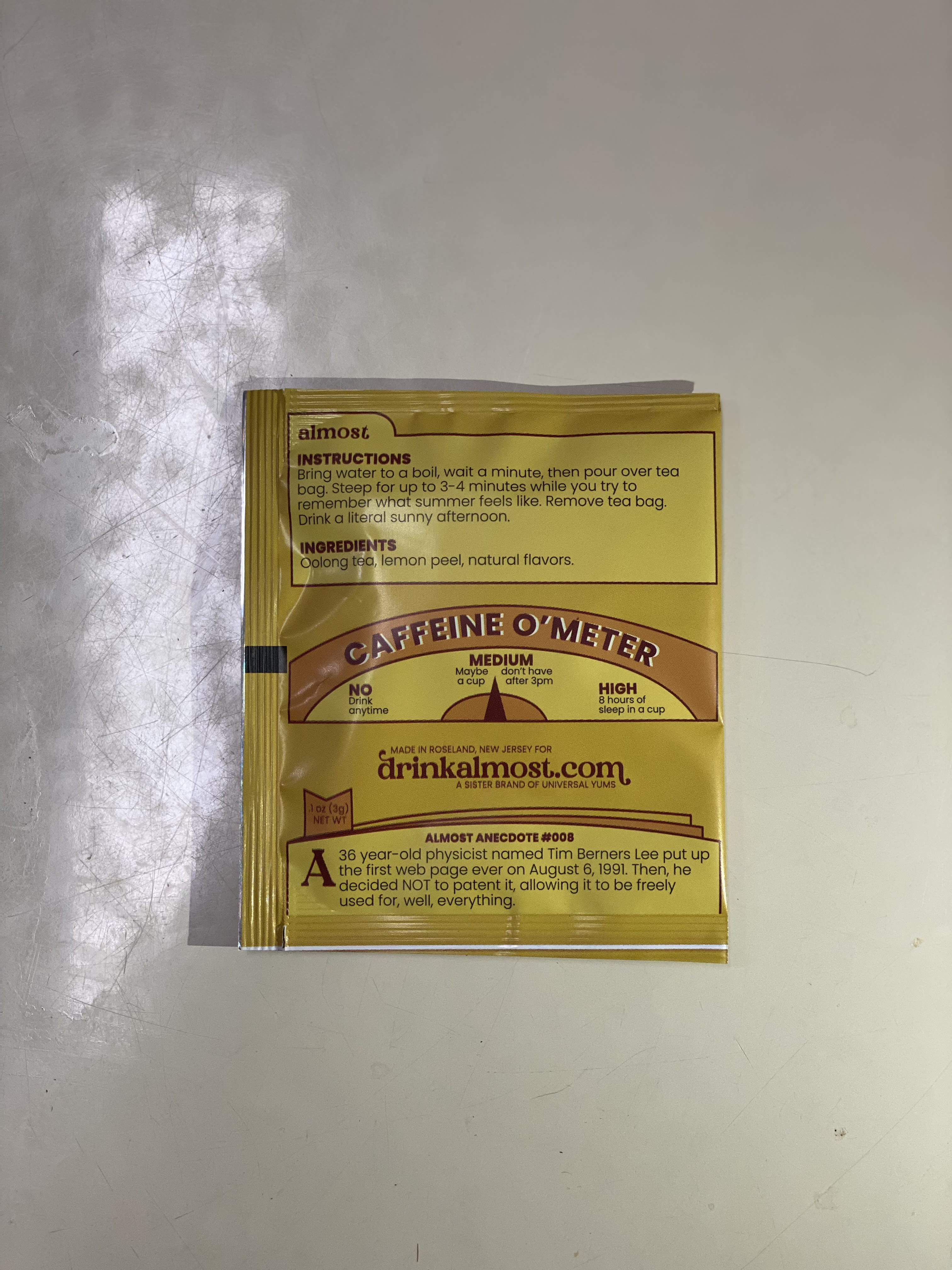 Overall, Almost Tea Lemon Meringue Pie tea sachet is a must-try for anyone who loves the taste of lemon meringue pie or is looking for a delicious and healthy alternative to sugary desserts. The tea is flavorful, comforting, and easy to prepare, and it's sure to become a favorite among tea lovers and dessert enthusiasts alike. With its all-natural ingredients, convenience, and versatility, Almost Tea Lemon Meringue Pie tea sachet is a perfect addition to any tea collection or dessert table. If the Lemon Meringue Pie blend doesn't pique your interest, check out our other Almost Tea reviews!